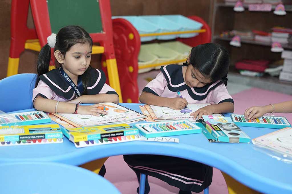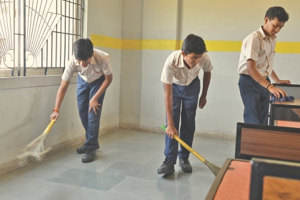 Work Education – Children explore professions like Bakery, Fashion, inematics, Dadi Ma Ke Nuskhe, Color Therapy, Mudra Therapy, Theater etc. at school. Adopt a Child – Academically strong children from the senior classes adopt an academically weak child from the junior classes. Eventually both learn! Life skills – Cleaning and maintenance of children’s own classrooms with staff assistance is a practise which is leaving a positive impact at home too. As confirmed by the parents